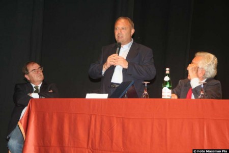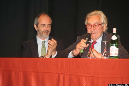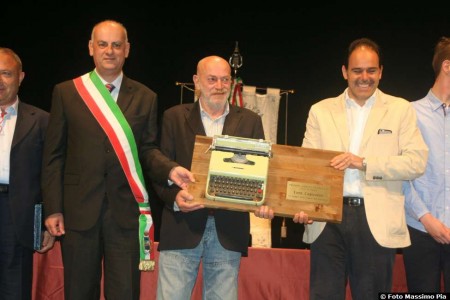 Toni Capuozzo riceve dal sindaco di Barga Marco Bonini e dal senatore Andrea Marcucci,il premio dell'edizione 2015.