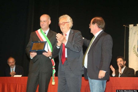 Carlo Gregoretti riceve da Alessandro Benedetti e dal sindaco di Barga Marco Bonini il premio speciale della giuria.